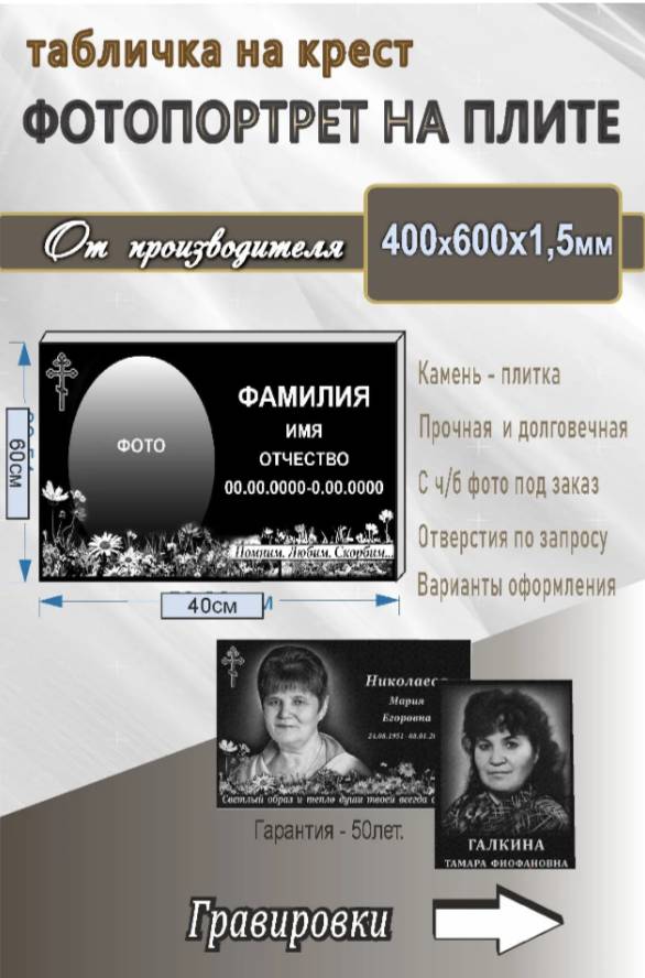КАМЕННЫЕ МЕМОРИАЛЬНЫЕ ПЛИТЫ С ИНДИВИДУАЛЬНОЙ ГРАВИРОВКОЙ ПОД ЗАКАЗ. УСТАНАВЛИВАЮТСЯ НА СТОЙКИ, НА КРЕСТ, ПАМЯТНИК.